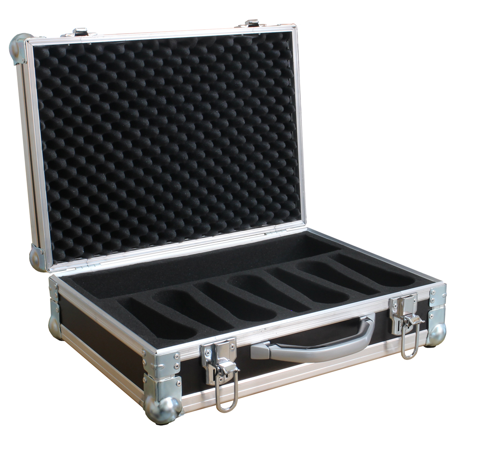 Mikrofonkoffer mit Formeinlage für 7 Mikrofone plus Zubehörabteil hinten